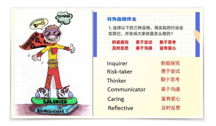 随着PYP项目的推进,从这个学期开始君诚学校就将IB十大培训者目标纳入常规课程中,与道德与法制课程一起,为孩子们培养良好的行为品格习惯,并将其融入到今后的学习和生活中去。