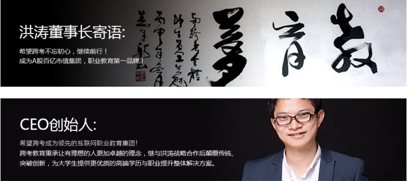跨考教育秉承“生而为赢”的精神,以教学研发、互联网驱动、培养精英、专业可信赖为发展的核心目标,努力践行着 “三位成功跨校或跨专业考生中,有两位来自跨考”的目标。未来,公司将继续致力于为3000万大学生提供高端学历与职业提升整体解决方案,创造更优质的线上线下相结合的教学产品体验。开创“让有理想的人更加卓越”的历史使命。